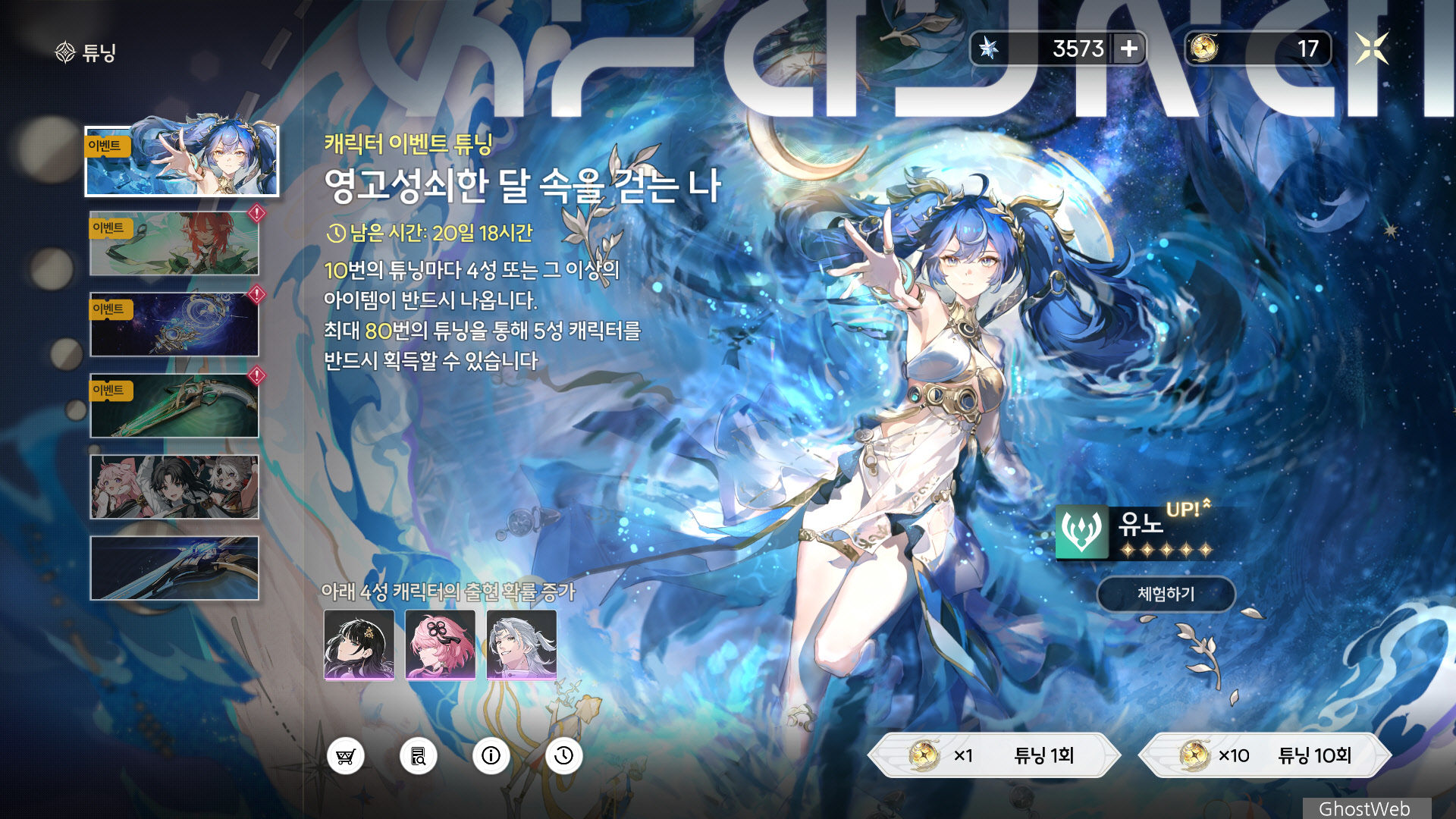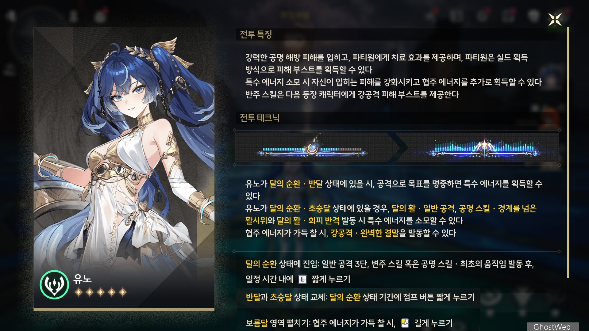 · 유노가 변주 스킬 혹은 공명 해방 발동 시, 자신은 5스택의 창백한 달빛의 축복을 직접 획득한다.