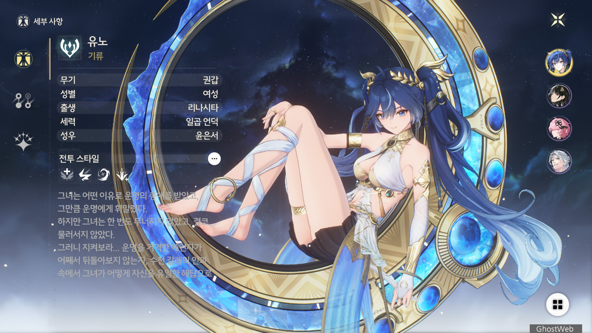 이번에는 5성 기류 권갑 캐릭터인 유노에 대해서 정리해보도록 할게요.