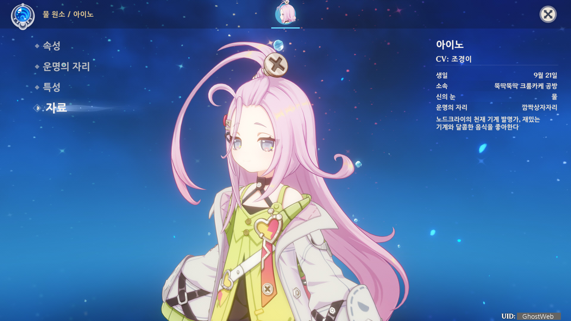 이번에는 4성 물 원소 캐릭터인 아이노에 대해서 정리해보도록 할게요.