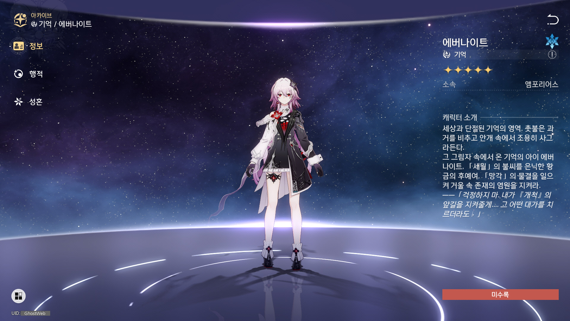 이번에는 얼음, 기억 신규 캐릭터인 에버나이트에 대해 정리해보도록 할게요.
