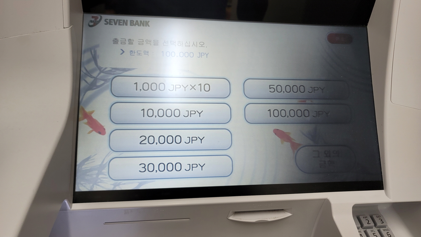 엔화 인출 방법은 트래블로그 앱에서 엔화를 충전한 다음 ATM에 카드를 넣고 언어(한국어 지원)를 선택하고 예금 계좌를 선택하고 인출액을 입력한 후 아까 교환한 JPY(엔화)로 선택하여 인출하면 돼요.