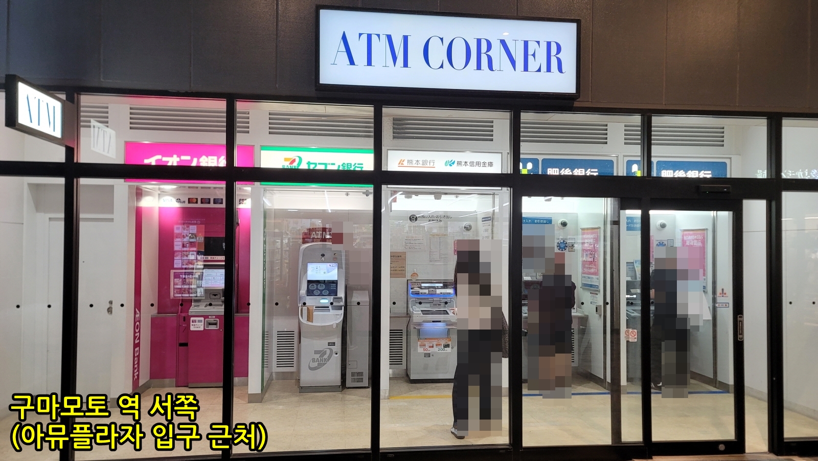 다행이 구마모토 역 중앙 부분에 있는 우체국 앞과 서쪽 아뮤플라자 입구 근처에 ATM 들이 모여 있는데 여기서 세븐 일레븐 ATM과 기타 다른 ATM 들(이온 뱅크)도 있으니 참고하세요.