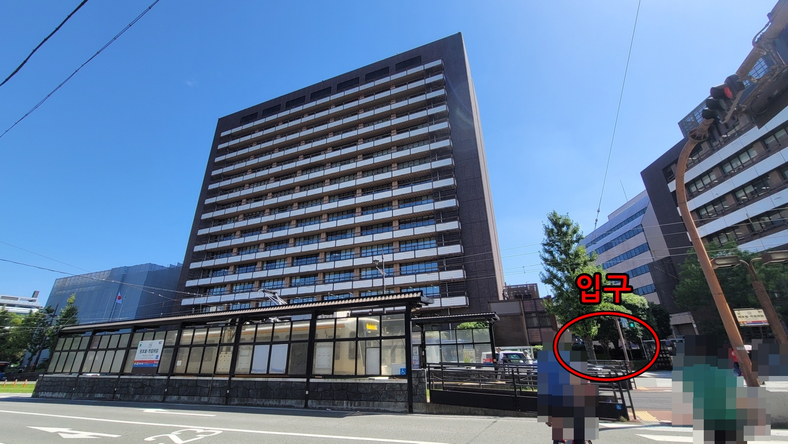 구마모토 시청 정거장에서 내려 횡단보도를 건너고 골목쪽으로 들어가다 바로 왼쪽에 있는 출입문으로 들어가 엘레베이터를 타고 14층으로 향하세요.