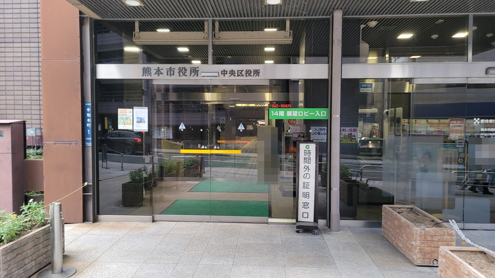 - 주소 : 일본 〒860-0808 Kumamoto, Chuo Ward, Tetorihoncho, 1−1 熊本市役所 本庁舎 14階