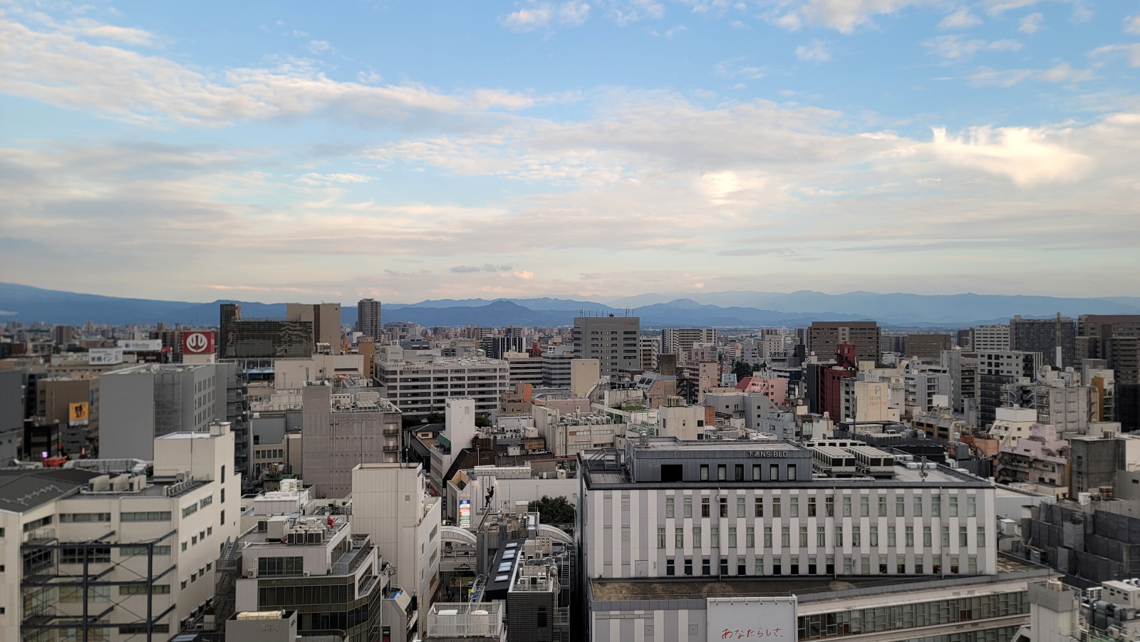 14층에 도착하면 구마모토 성, 아소산, 시내 방향으로 창문이 있어서 구마모토 시내를 한 눈에 내려다 볼 수 있어요.
