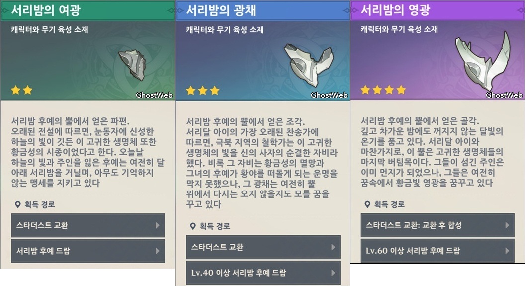 이번에는 노드크라이 캐릭터와 무기 육성 소재인 서리밤의 여광, 서리밤의 광채, 서리밤의 영광을 얻을 수 있는 서리밤 후예의 위치를 정리해보도록 할게요.