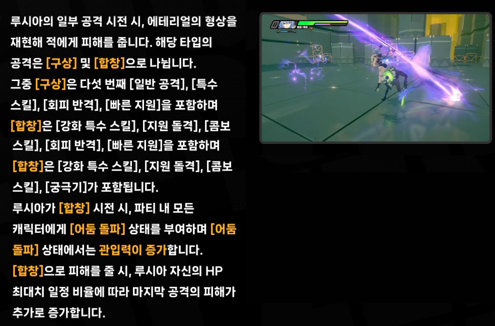 - 루시아가 [합창] 시전 시 파티 내 모든 캐릭터에게 [어둠 돌파] 상태를 부여한다.