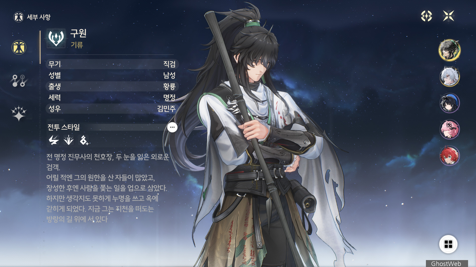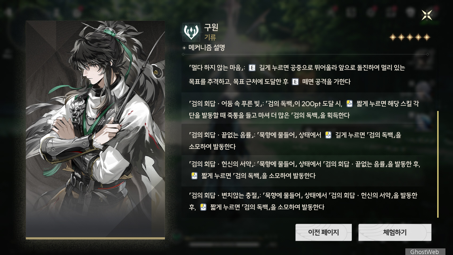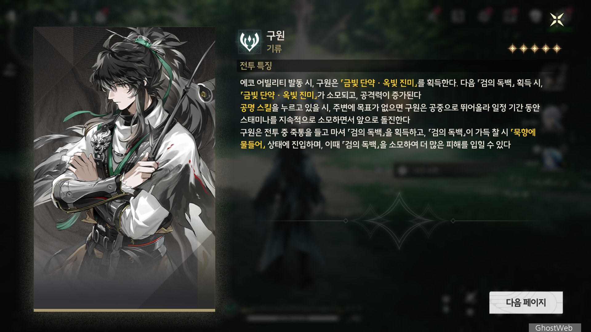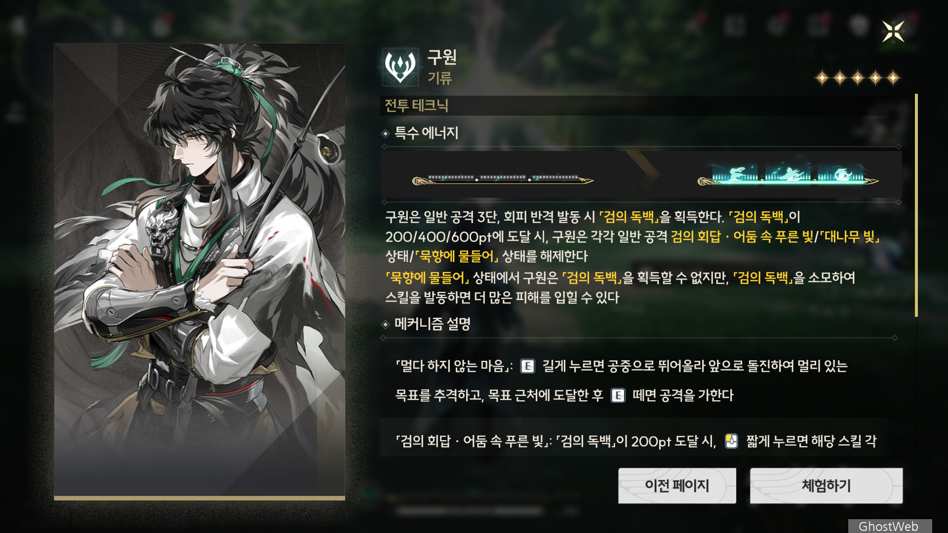 이번에는 기류, 직검 캐릭터인 구원에 대해서 정리해보도록 할게요.