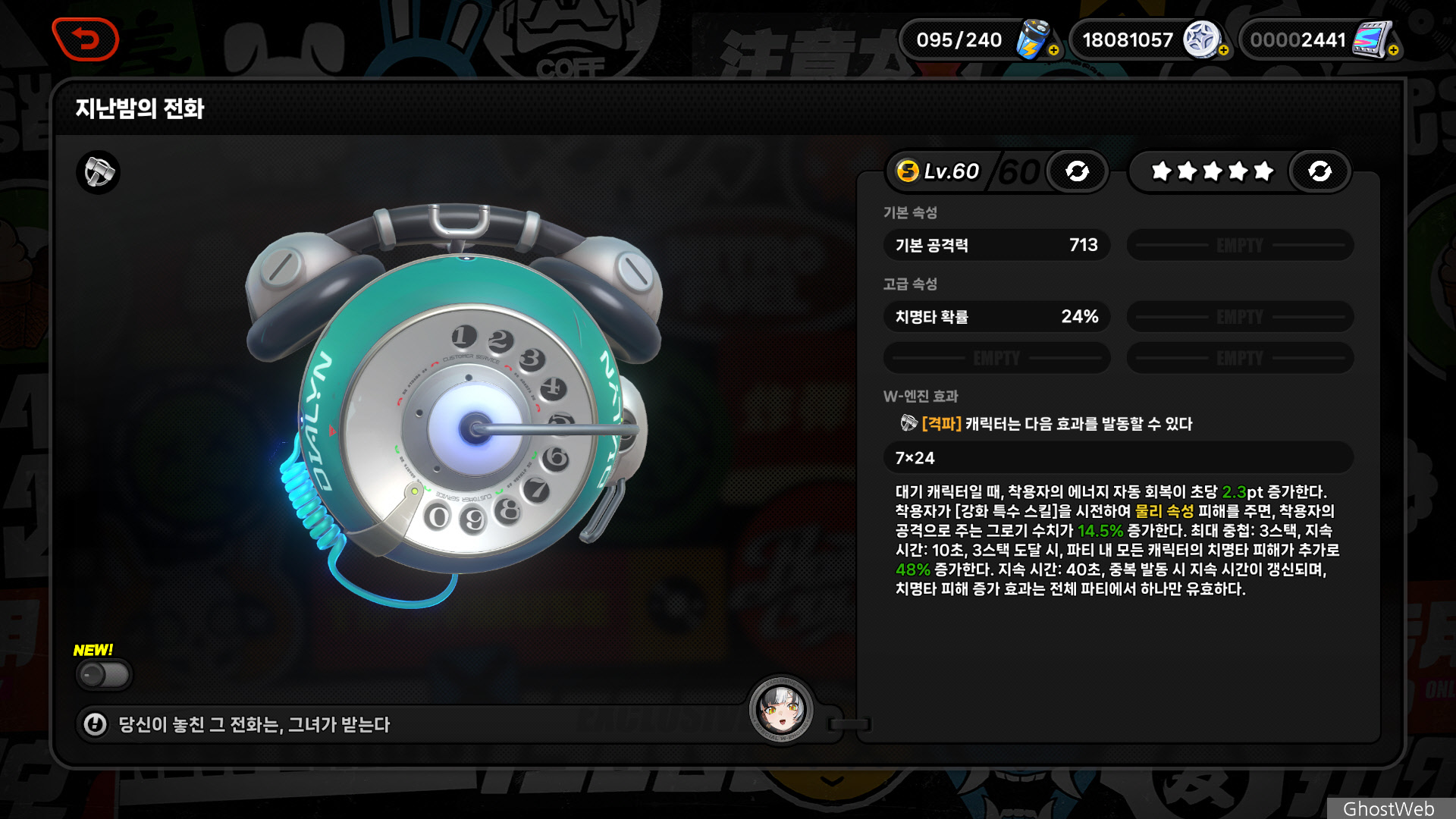 ○ 특성 : 격파 (전용 W-엔진: 지난밤의 전화)