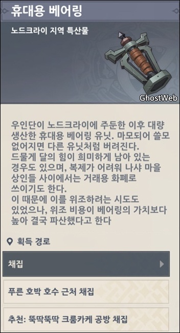 - 휴대용 베어링 (노드크라이 - 채집)