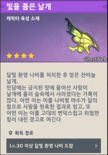 - 빛을 품은 날개 (노드크라이 - 달빛 환영 나비 처치)