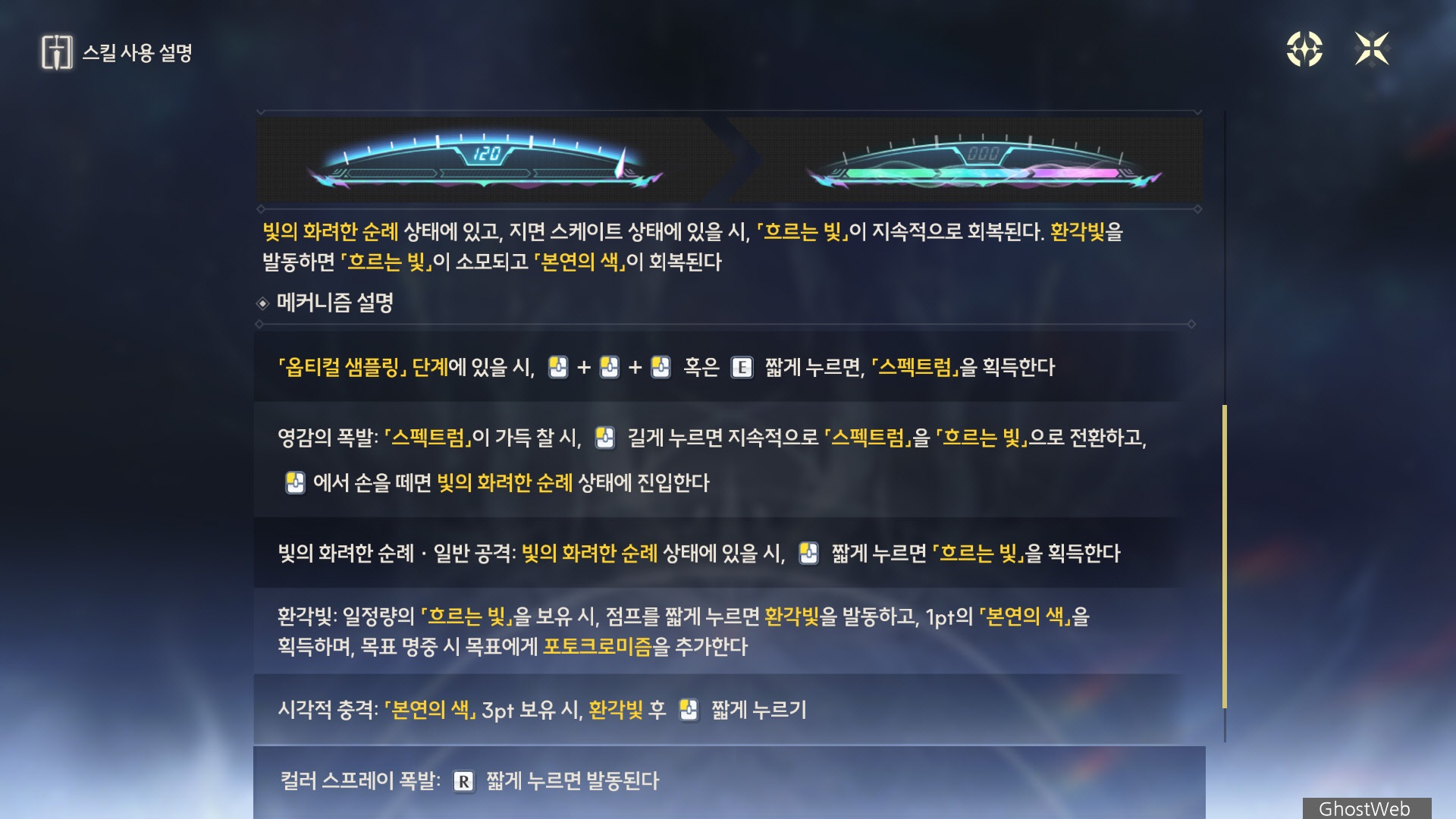 · 옵티컬 샘플링 단계에서 특정 스킬을 발동하는 기간 동안 스펙트럼을 회복한다.