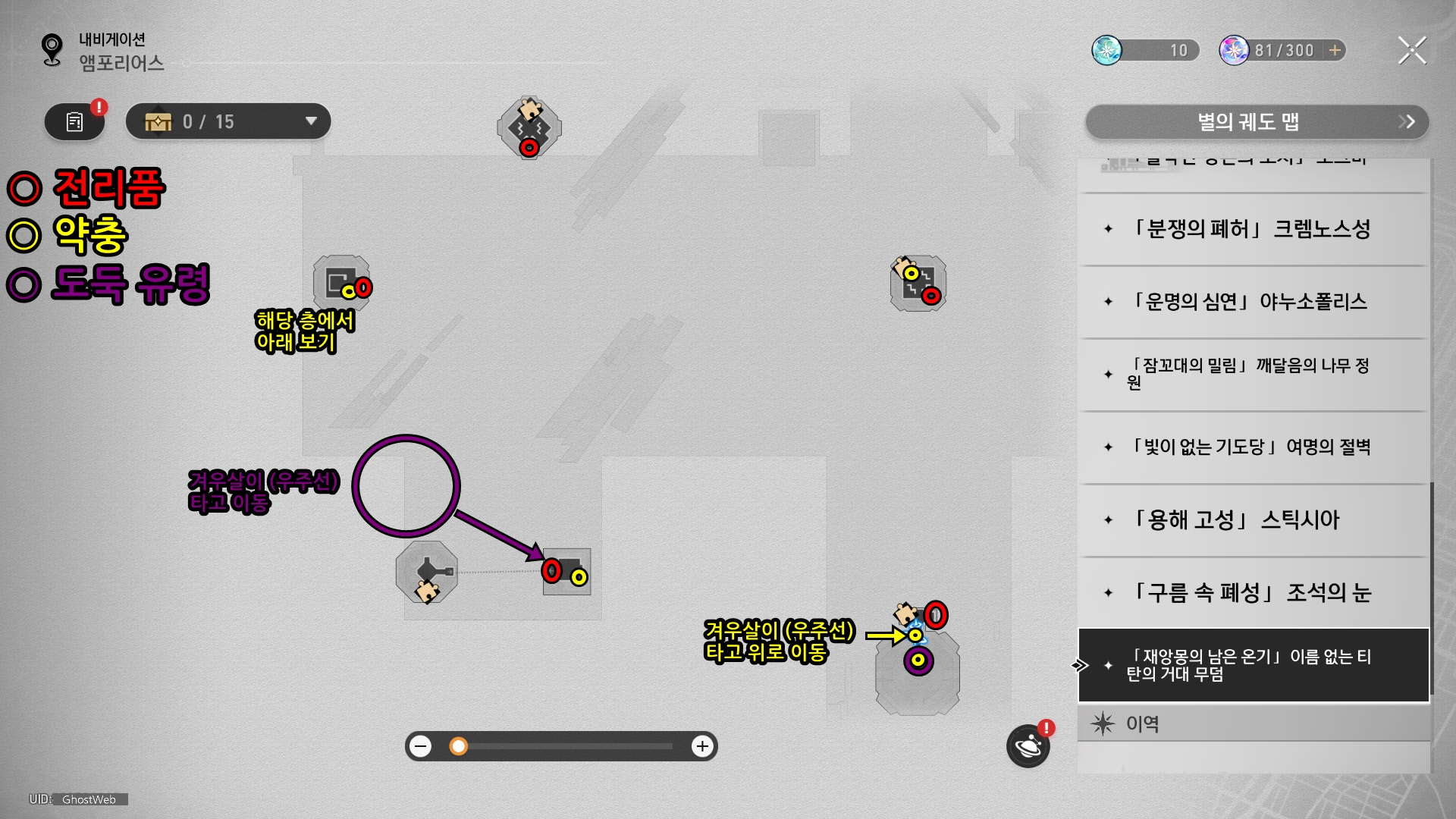 | [붕괴: 스타레일] 앰포리어스 - 세상 매트릭스 - 이름 없는 티탄의 거대 무덤 (전리품, 약충, 도둑 유령 위치 정리) (1) | 2025.12.26 |