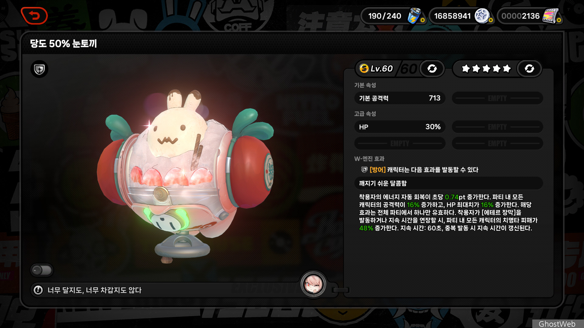 ○ 특성 : 방어 (전용 W-엔진 : 당도 50% 눈토끼)