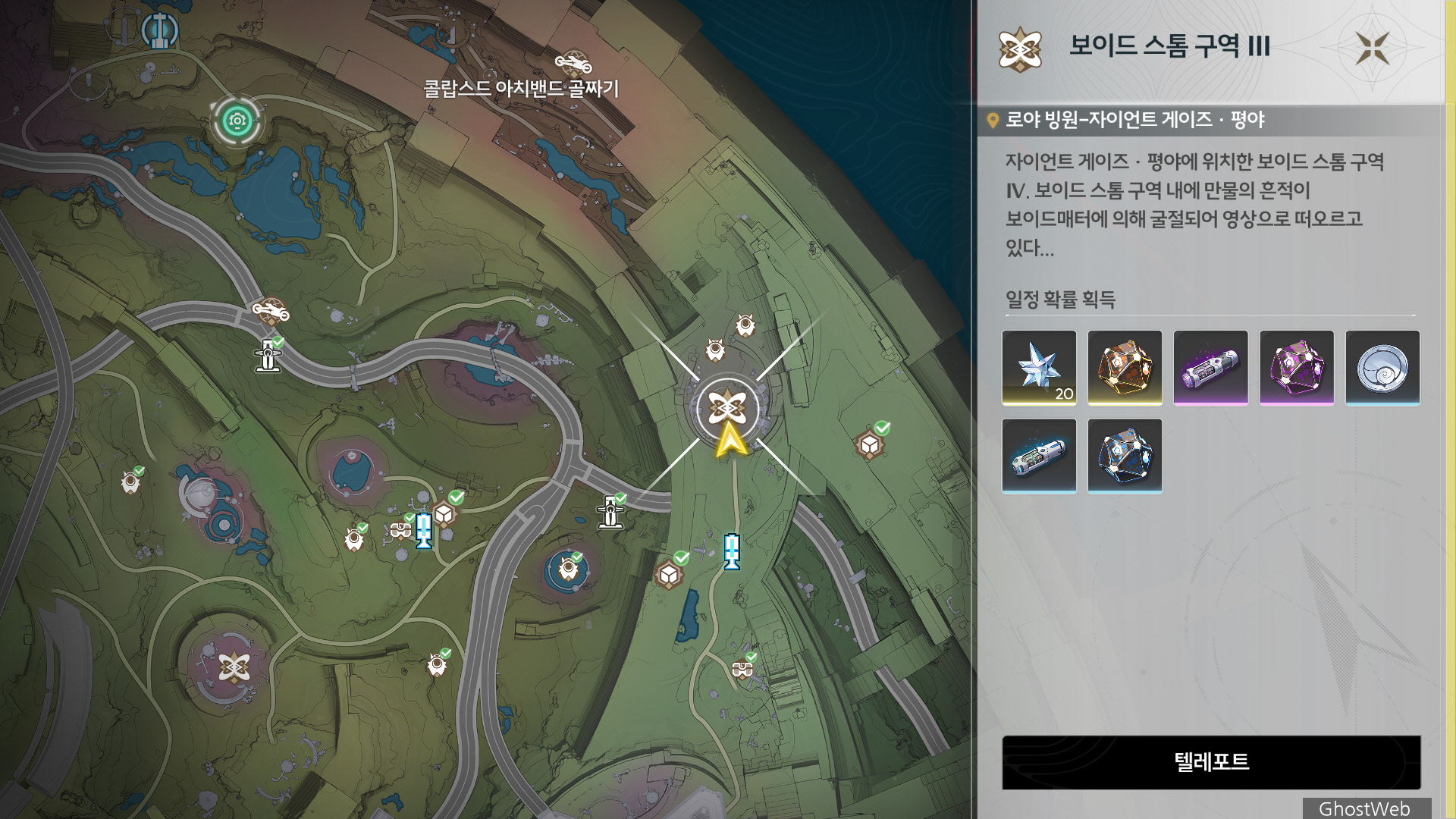 이번에는 로야 빙원에 있는 조석의 유산과 보이드 스톰 구역의 위치를 정리해보도록 할게요.