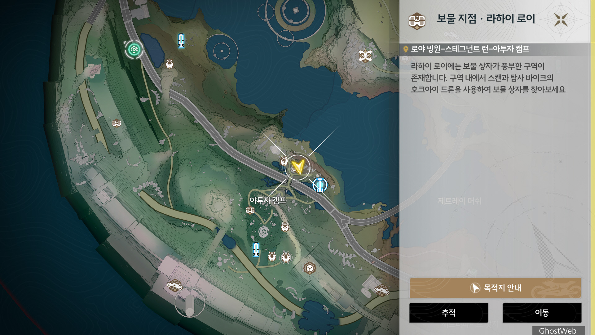 - 탐색을 사용하여 주변에 있는 보물 상자를 찾으세요.