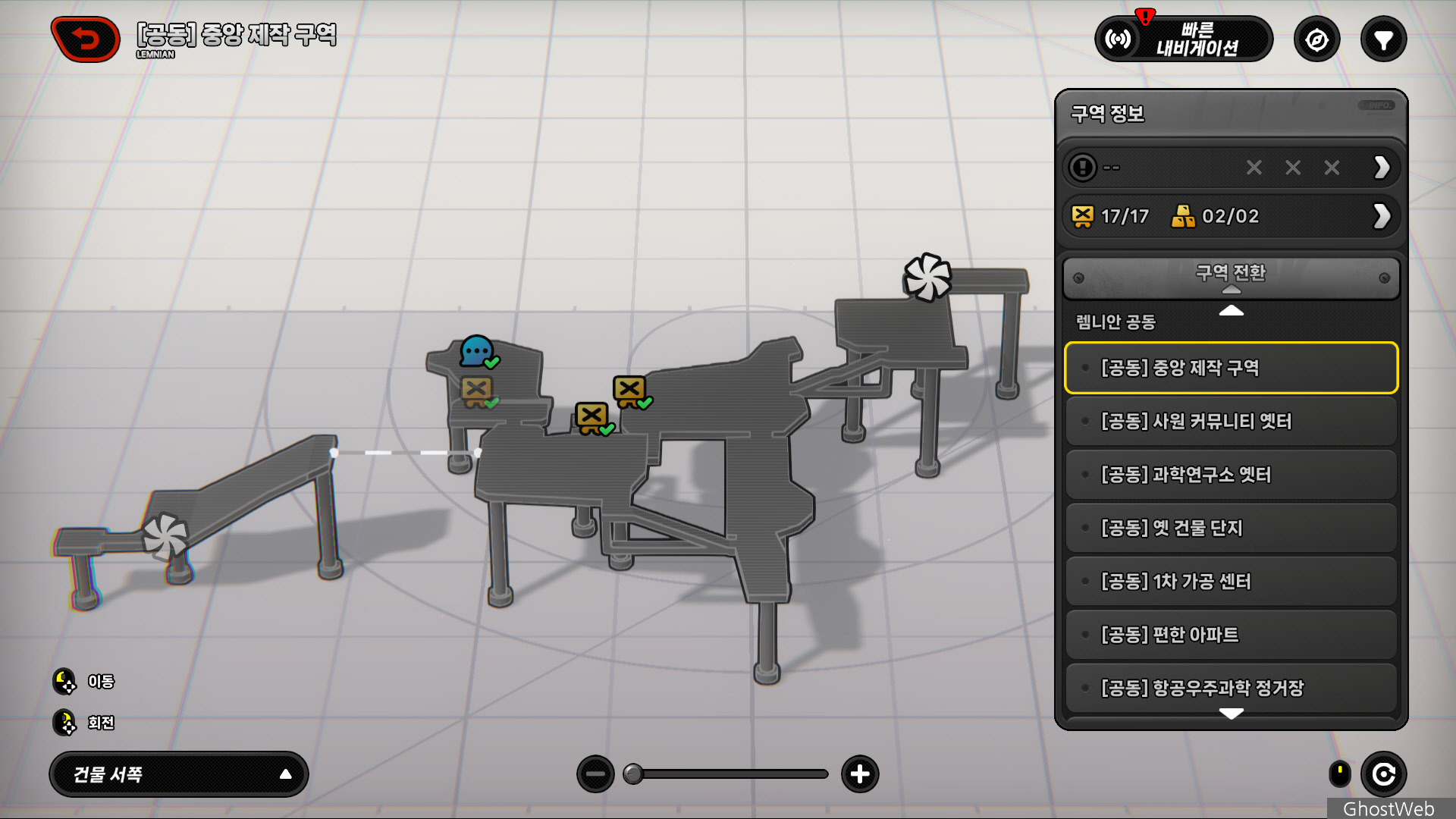 맵 중에 부속 건물 또는 층이 있는 경우가 있으니 지도 왼쪽 하단의 콤보 박스를 눌르면 해당 층, 건물의 지도를 볼 수 있어요.