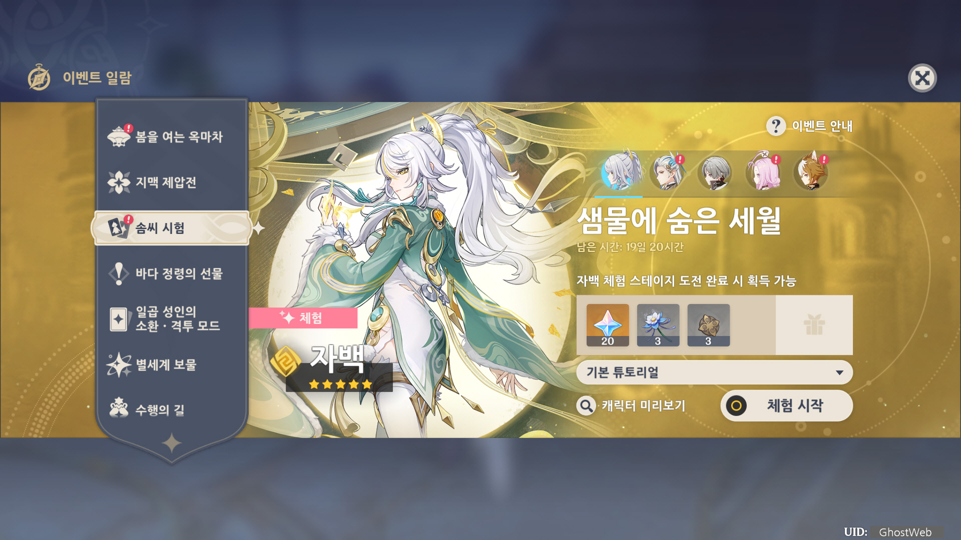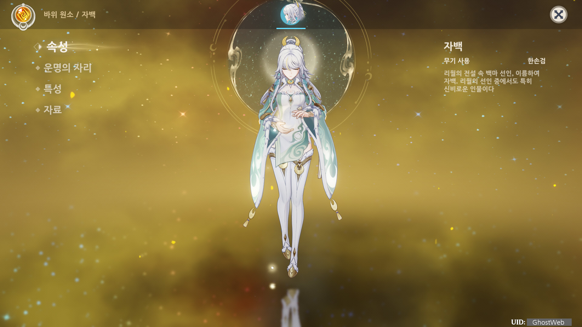이번에는 5성 바위 원소 캐릭터인 자백에 대해서 정리해보도록 할게요.