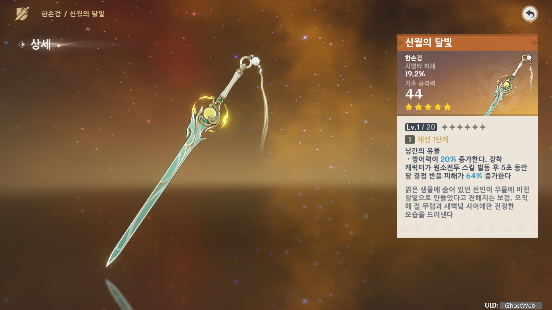 ○ 무기 : 한손검 (전용 무기: 신월의 달빛)