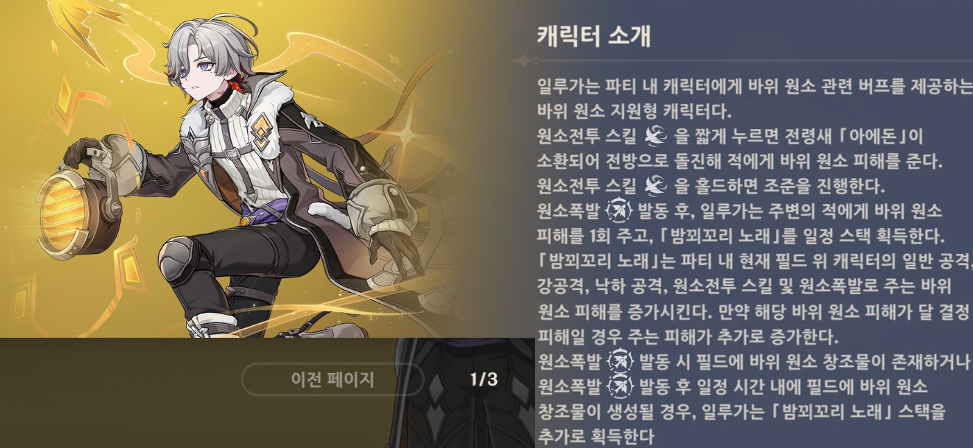 이번에는 4성 바위 원소 캐릭터인 일루가에 대해서 정리해보도록 할게요.
