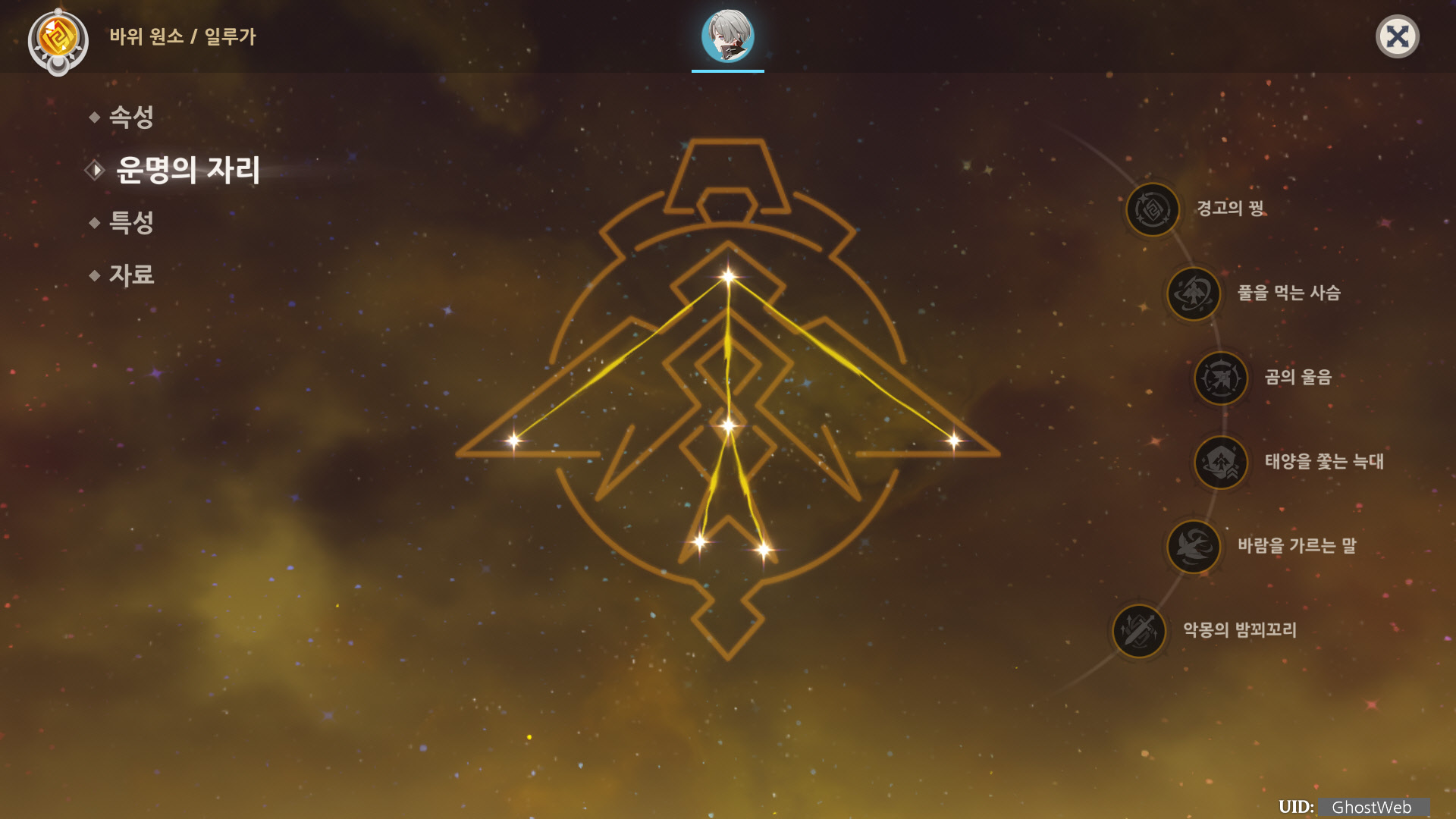 - 파티 내에 물 원소 또는 바위 원소 캐릭터가 1/2/3명 있을 경우, 밤꾀꼬리 노래의 주는 피해 증가 효과가 일루가 원소 마스터리의 7%/14%/24%만큼 추가로 증가한다.