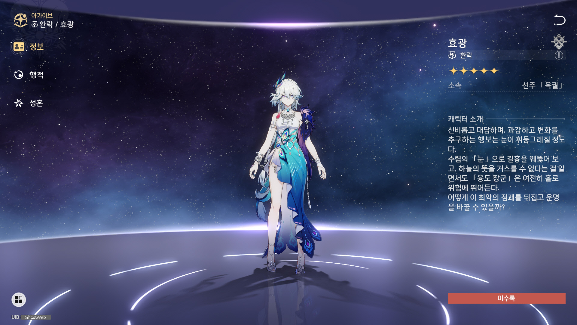 이번에는 물리, 환락 캐릭터인 효광 정리해보도록 할게요.
