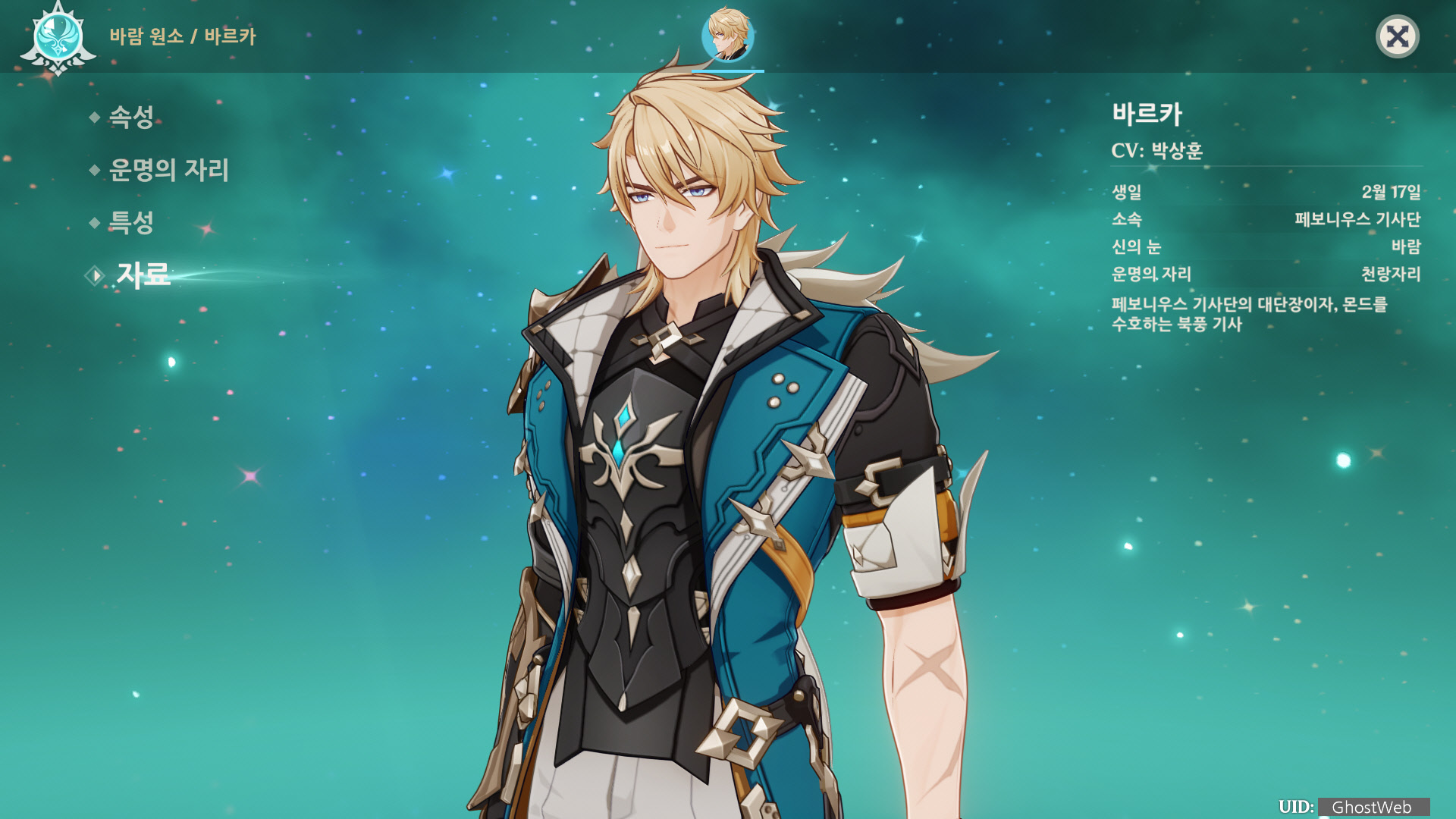 이번에는 5성 바람 원소 캐릭터인 바르카에 대해서 정리해보도록 할게요.