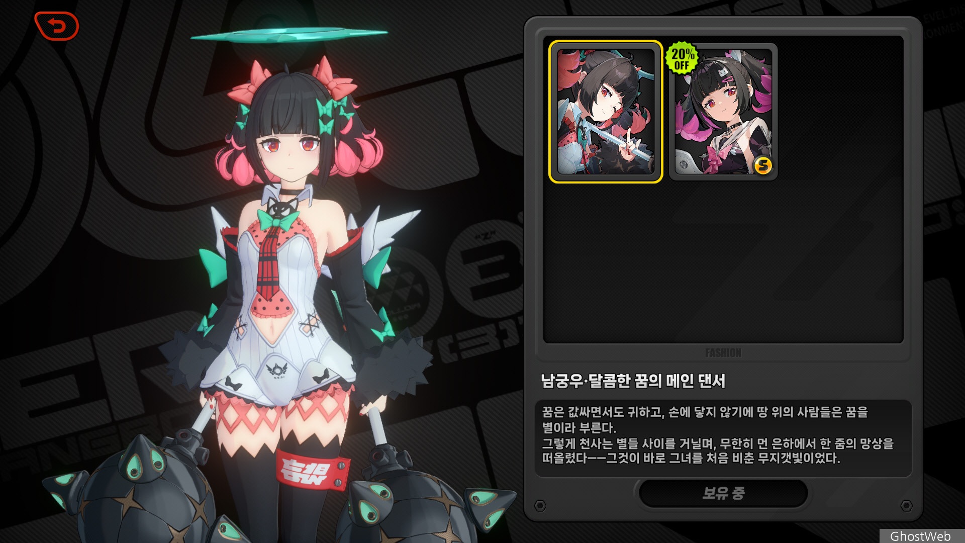 | F | 기본 공격력 25pt 증가 [핵심 패시브: 천재 아이돌] 스킬 레벨 + 1 |