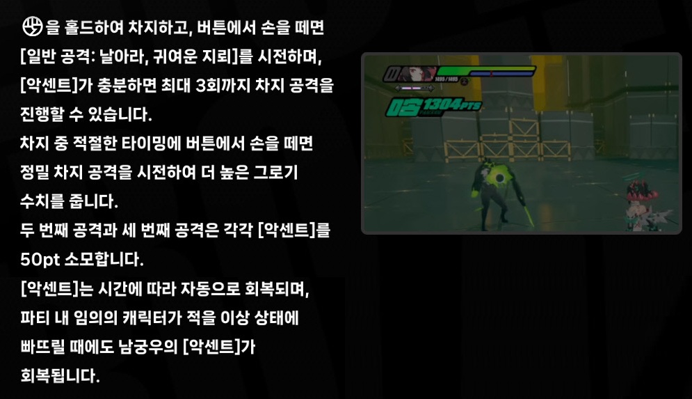 - 남궁우는 최대 100pt의 [악센트]를 보유할 수 있으며, 전장 진입 시 초기 [악센트]를 30pt 보유한다.