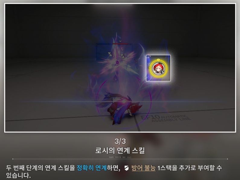 - 연계 스킬의 두 번째 공격이 정확하게 연계되면, 추가로 방어 불능 1스택을 쌓습니다.