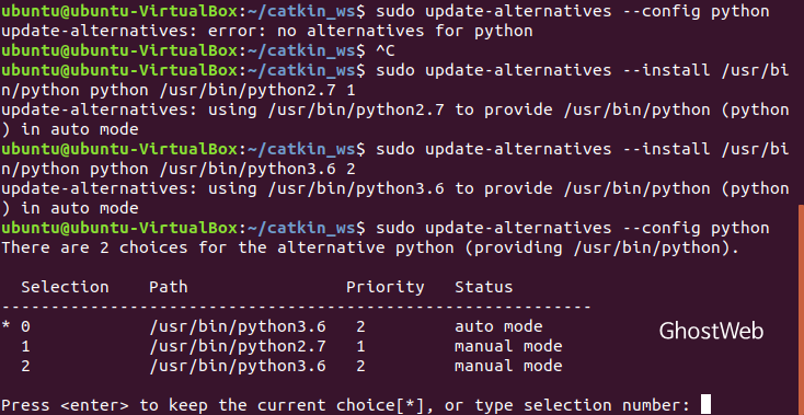 sudo update-alternatives --install /usr/bin/python python /usr/bin/python3.6 2