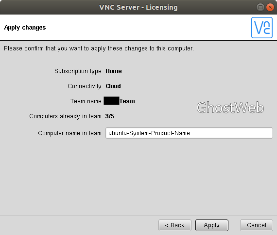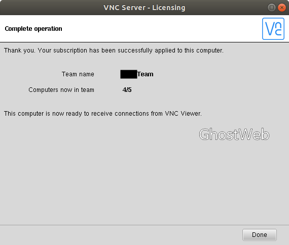 등록할 PC의 이름을 확인하고 아래의 Apply 버튼을 클릭하면 설정 내용을 적용하기 위해 다시 암호를 입력하고 다시 창으로 돌아가 아래에 있는 Done 버튼을 클릭하여 VNC Server 설정을 완료하세요.