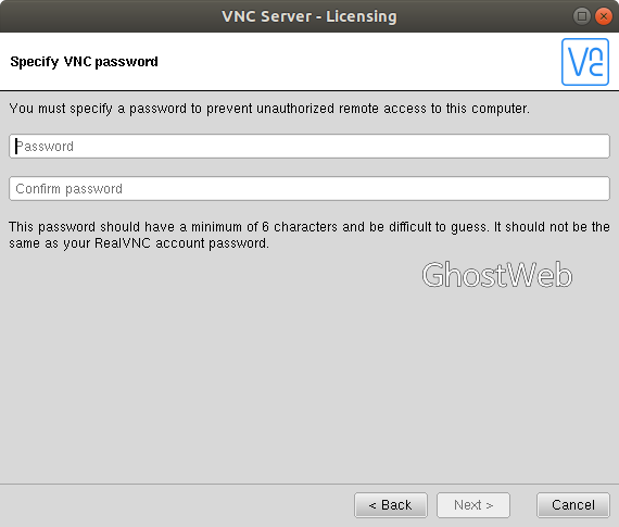 다음으로는 VNC Server에 접속할 때 필요한 비밀번호를 입력하고 아래의 Next 버튼을 클릭하세요.