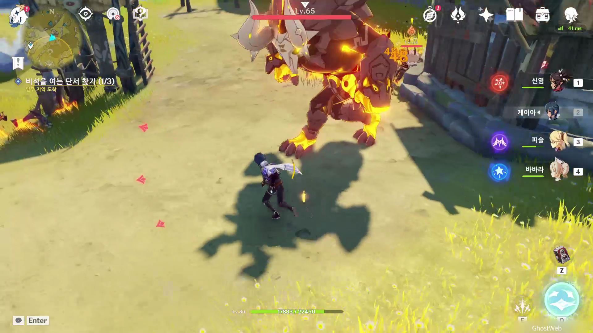 유적 비석 기준 지도 상 3~4시 방향에 있는 집 근처로 가서 주변에 몬스터를 처치하면 빛 인도 부품을 얻을 수 있어요.