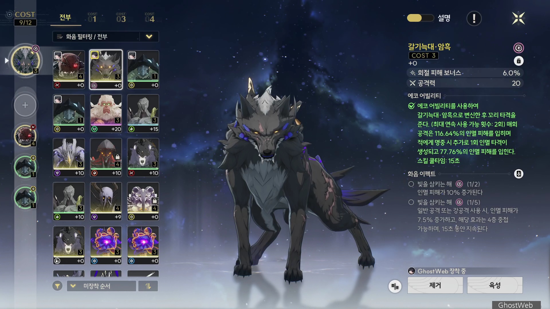 ·변신 후 자신의 인멸 피해 보너스가 12% 증가하며, 공명 스킬 피해 보너스가 12% 증가한다. (지속 시간 : 15초)